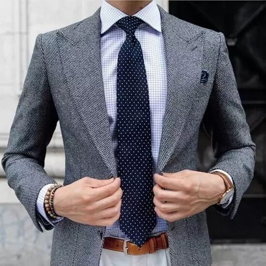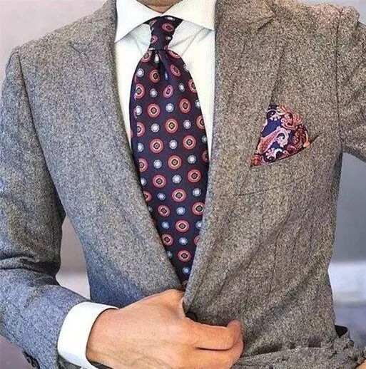 当衬衫和外套都是纯色的时候,不妨搭配一条出挑的宽领带。领带对于西装,可以说是重要的点睛之笔,一条出彩的领带,能让一套平凡无比的西装,绽放异彩。